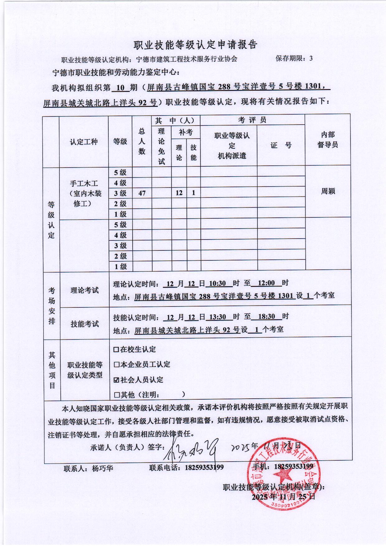 2025年12月12日第十期职业技能等级认定申请报告公示