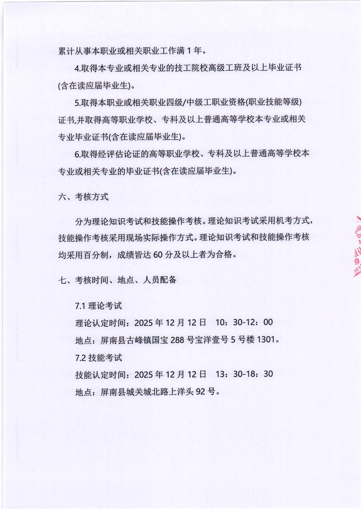 2025年12月12日第十期职业技能等级认定考核方案公示